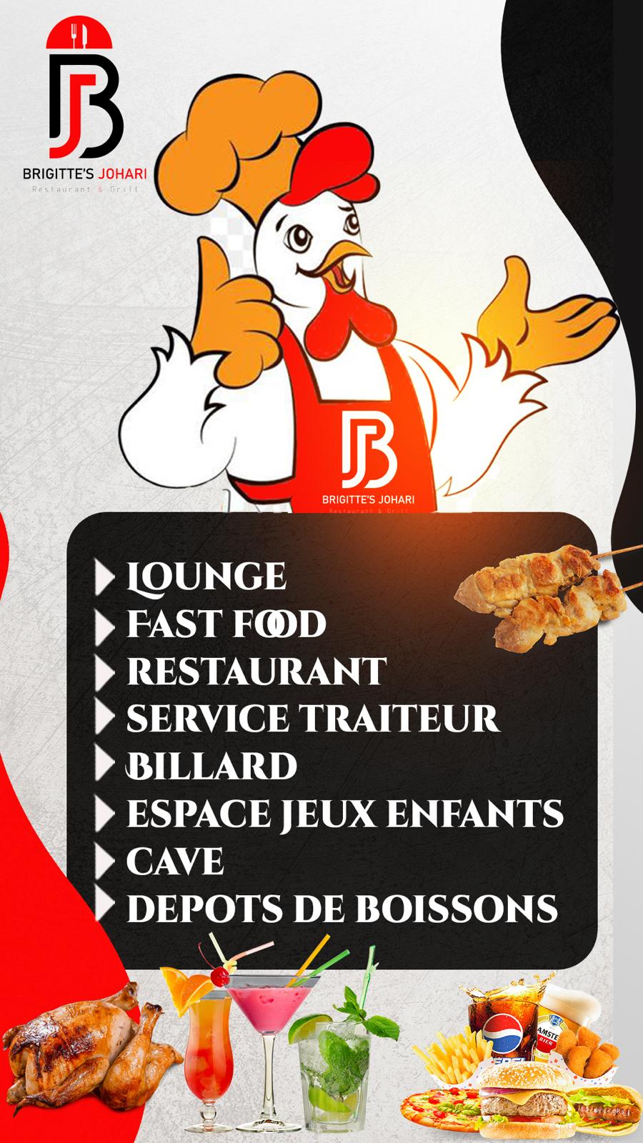 Chez Brigitte’s Johari Restaurant & Grill, nous célébrons le plaisir de bien manger et de partager des moments conviviaux. Notre établissement est né de la passion d’offrir une cuisine savoureuse mêlant inspirations locales et internationales. Notre ambition ? Vous proposer une expérience culinaire complète, dans une ambiance chaleureuse et festive.